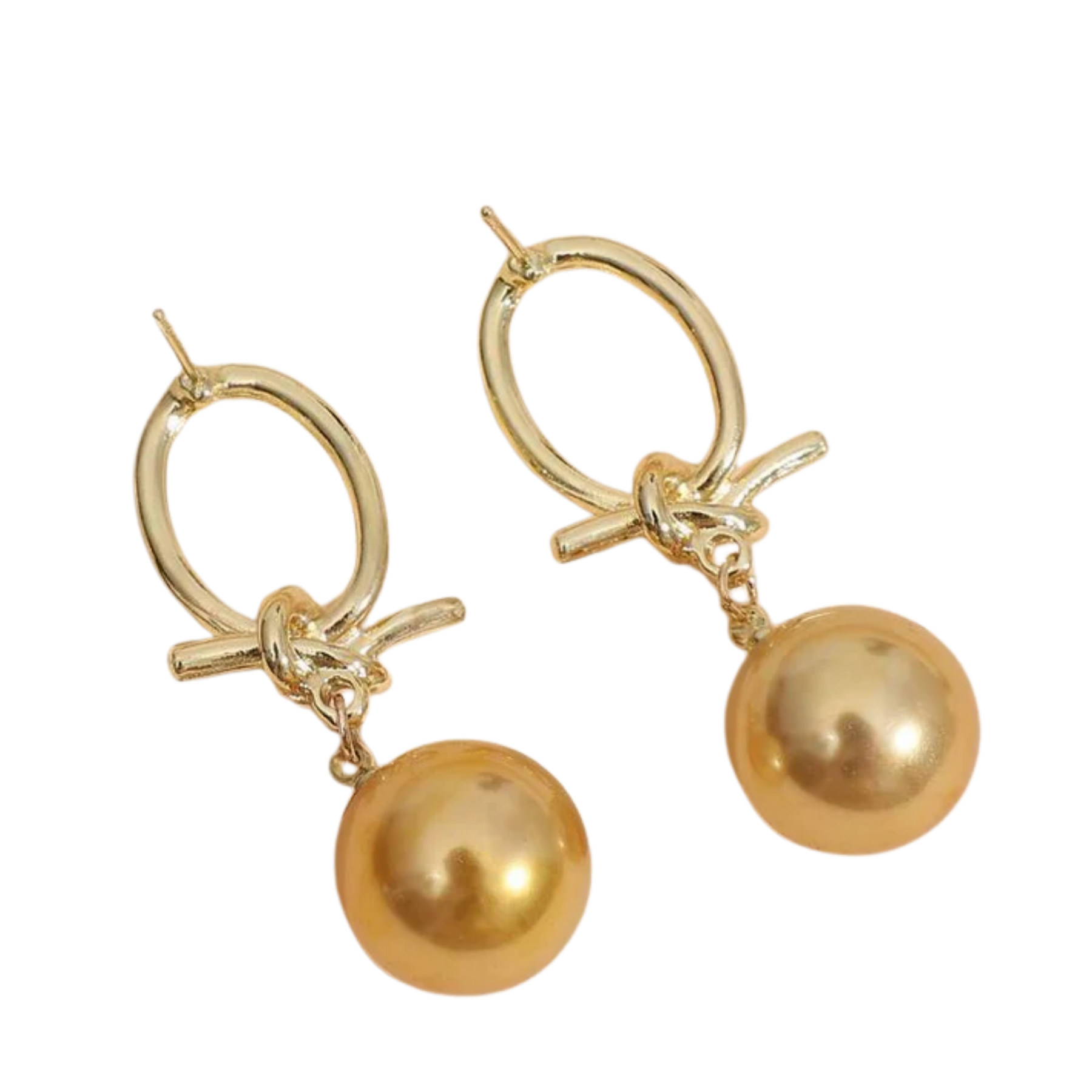 עגילי חישוק פנינה מוזהבים